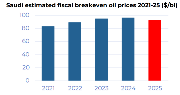 *’Breakeven oil price’ is defined as the oil price needed by Saudi Arabia to balance its fiscal budget.