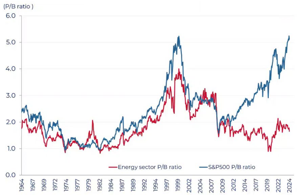 P/B of the energy sector versus S&P500