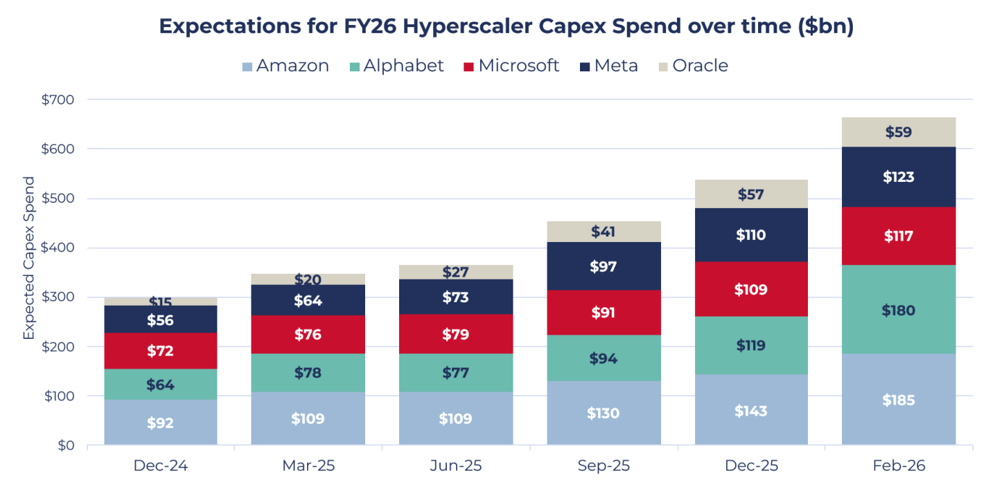 A focus on the disruptive effects of AI prompted a sharp sell-off in software and data-driven businesses. Investors rotated towards more asset-heavy sectors such as Materials and Capital Goods, perceived to be less exposed to AI disruption and potential beneficiaries of the AI infrastructure build-out.