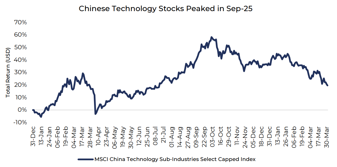More broadly, technology-related stocks in China have experienced a meaningful correction over the past six months due to a combination of profit-taking, reassessment of competitive positioning in AI, and a broader normalisation of expectations.