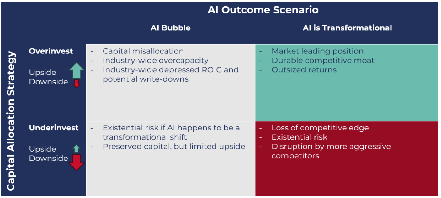 Taking a step back, a scenario assessment of capital allocation strategies might help to explain this growth in CapEx. If we consider the range of potential outcomes of underinvesting versus overinvesting, it appears that an overbuild of capacity may be the most probable outcome, driven by risk asymmetry.