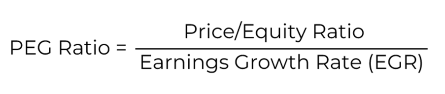 The PEG Ratio of a company is calculated by dividing its P/E Ratio by the one-, three-, or five-year EGR.
