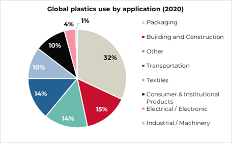 Plastics are now widely used in consumer staples (packaging), healthcare (disposable medical equipment), textiles (synthetic fibres) and transportation (lightweight vehicle components).